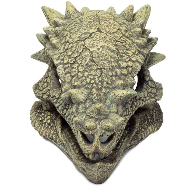 Этот функциональный и максимально реалистичный грот, стилизованный под череп сказочного дракона - незаменимый элемент для оригинального оформления любых пресноводных аквариумов, в особенности для лабиринтовых рыб, а так же для террариумов. Этот грот послужит дополнительным укрытием для небольших рыб, отвечая тем самым не только за эстетику, но и принося обитателям аквариума реальную пользу. Такой грот может быть использован как самостоятельный элемент декора - для оформления небольшого аквариума, так и в комплекте с другими гротами, объемными фонами и искусственными растениями - для оформления аквариума большого объема. Изготовленный из нетоксичной полиэфирной смолы, очень прочный и долговечный, удобный в эксплуатации и совершенно безвредный для аквариумных жителей, этот грот прослужит вам долгие годы, украшая собой ваш "компактный подводный мир" - на радость вам и его обитателям.