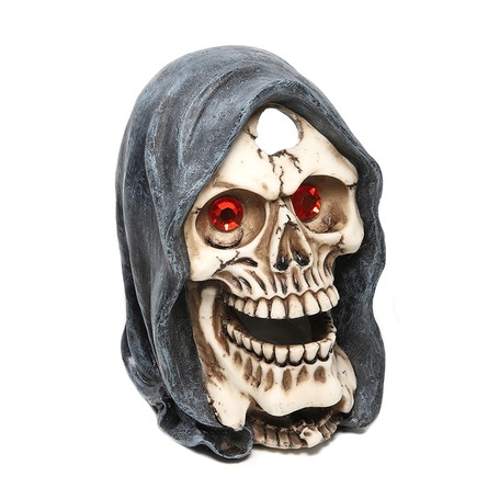 Этот функциональный и максимально реалистичный грот - незаменимый элемент для оригинального оформления любых пресноводных аквариумов, особенно для лабиринтовых рыб, а также террариумов и палюдариумов. Полый внутри, этот грот послужит дополнительным укрытием для небольших рыб или любых видов рептилий, отвечая тем самым не только за эстетику, но и принося обитателям аквариума реальную пользу. Стилизованный под человеческий череп, с инкрустированными красными кристаллами глазницами, такой грот может быть использован как самостоятельный элемент декора - для оформления небольшого аквариума, так и в комплекте с другими гротами, объемными фонами и искусственными растениями - для оформления аквариума большого объема. Изготовленный из нетоксичной полиэфирной смолы, очень прочный и долговечный, удобный в эксплуатации и совершенно безвредный для аквариумных жителей, этот грот прослужит вам долгие годы, украшая собой ваш "компактный подводный мир" - на радость вам и его обитателям.