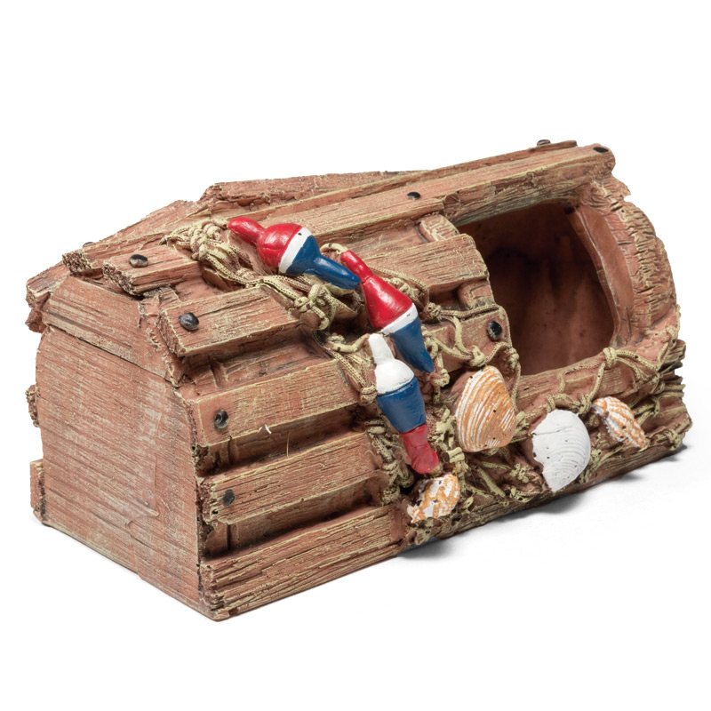 Этот функциональный и максимально реалистичный грот, стилизованный под затонувший ящик - незаменимый элемент для оригинального оформления любых пресноводных и морских аквариумов. Этот грот послужит дополнительным укрытием для небольших рыб, отвечая тем самым не только за эстетику, но и принося обитателям аквариума реальную пользу. Такой грот может быть использован как самостоятельный элемент декора - для оформления небольшого аквариума, так и в комплекте с другими гротами, объемными фонами и искусственными растениями - для оформления аквариума большого объема. Изготовленный из нетоксичной полиэфирной смолы, очень прочный и долговечный, удобный в эксплуатации и совершенно безвредный для аквариумных жителей, этот грот прослужит вам долгие годы, украшая собой ваш "компактный подводный мир" - на радость вам и его обитателям.