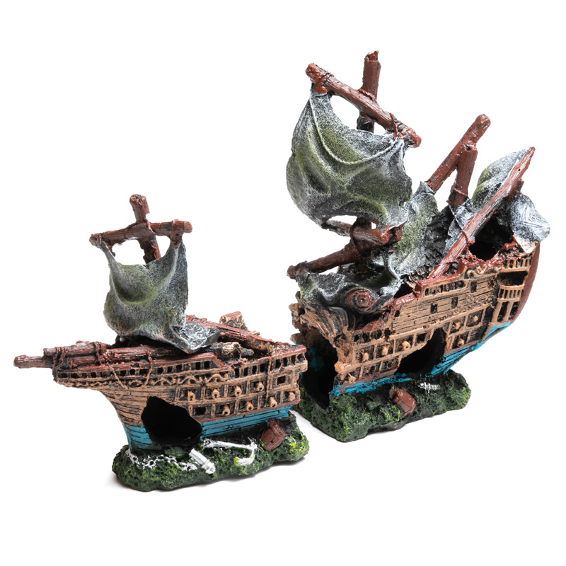 Этот функциональный и максимально реалистичный грот из двух частей в виде затонувшего средневекового корабля - незаменимый элемент для оригинального оформления любых пресноводных или морских аквариумов. Этот грот послужит дополнительным укрытием для небольших рыб, отвечая тем самым не только за эстетику, но и принося обитателям аквариума реальную пользу. Такой грот может быть использован как самостоятельный элемент декора - для оформления небольшого аквариума, так и в комплекте с другими гротами, объемными фонами и искусственными растениями - для оформления аквариума большого объема. Изготовленный из нетоксичной полиэфирной смолы, очень прочный и долговечный, удобный в эксплуатации и совершенно безвредный для аквариумных жителей, этот грот прослужит вам долгие годы, украшая собой ваш "компактный подводный мир" - на радость вам и его обитателям.