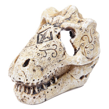 Небольшой реалистичный грот, стилизованный под череп ископаемого динозавра - элемент для оригинального оформления любых пресноводных аквариумов, а так же для террариумов. Этот грот послужит дополнительным укрытием для маленьких рыб, отвечая тем самым не только за эстетику, но и принося обитателям аквариума реальную пользу. Такой грот может быть использован как самостоятельный элемент декора - для оформления небольшого аквариума, так и в комплекте с другими гротами, объемными фонами и искусственными растениями - для оформления аквариума большого объема. Изготовлен из нетоксичной полиэфирной смолы, очень прочный и долговечный, удобный в эксплуатации и совершенно безвредный для аквариумных жителей.