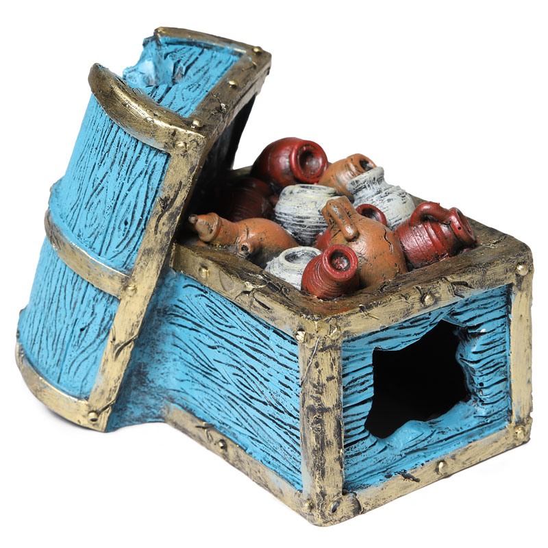 Этот функциональный и максимально реалистичный грот в виде сундука - незаменимый элемент для оригинального оформления любых пресноводных или морских аквариумов. Этот грот послужит дополнительным укрытием для небольших рыб, отвечая тем самым не только за эстетику, но и принося обитателям аквариума реальную пользу. Такой грот может быть использован как самостоятельный элемент декора - для оформления небольшого аквариума, так и в комплекте с другими гротами, объемными фонами и искусственными растениями - для оформления аквариума большого объема. Изготовленный из нетоксичной полиэфирной смолы, очень прочный и долговечный, удобный в эксплуатации и совершенно безвредный для аквариумных жителей, этот грот прослужит вам долгие годы, украшая собой ваш "компактный подводный мир" - на радость вам и его обитателям.