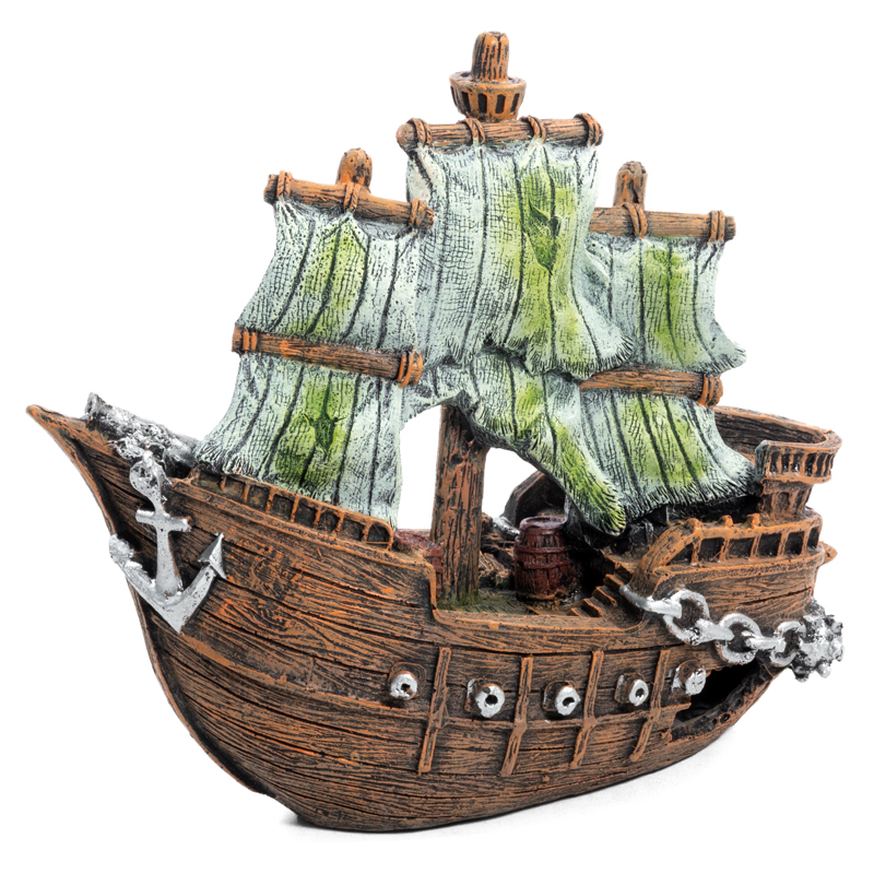 Этот функциональный и максимально реалистичный грот из двух частей в виде затонувшего средневекового корабля - незаменимый элемент для оригинального оформления любых пресноводных или морских аквариумов. Этот грот послужит дополнительным укрытием для небольших рыб, отвечая тем самым не только за эстетику, но и принося обитателям аквариума реальную пользу. Такой грот может быть использован как самостоятельный элемент декора - для оформления небольшого аквариума, так и в комплекте с другими гротами, объемными фонами и искусственными растениями - для оформления аквариума большого объема. Изготовленный из нетоксичной полиэфирной смолы, очень прочный и долговечный, удобный в эксплуатации и совершенно безвредный для аквариумных жителей, этот грот прослужит вам долгие годы, украшая собой ваш "компактный подводный мир" - на радость вам и его обитателям.