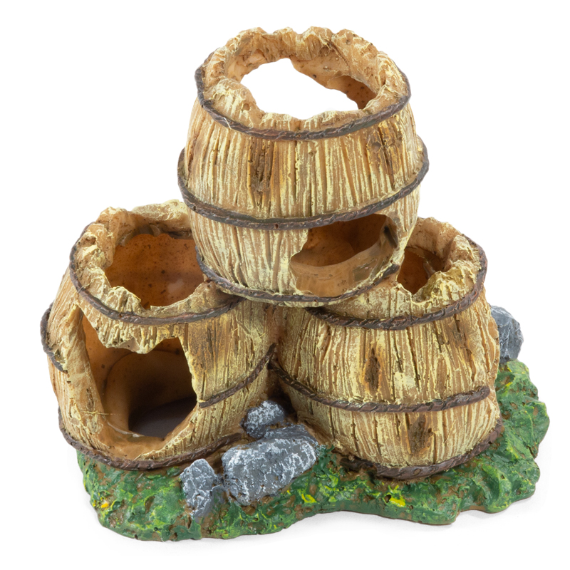 Этот функциональный и максимально реалистичный грот - незаменимый элемент для оригинального оформления любых пресноводных или морских аквариумов. Разбитые бочки - свидетели кораблекрушения - можно найти на морском дне. Этот грот послужит дополнительным укрытием для небольших рыб, отвечая тем самым не только за эстетику, но и принося обитателям аквариума реальную пользу. Такой грот может быть использован как самостоятельный элемент декора - для оформления небольшого аквариума, так и в комплекте с другими гротами, объемными фонами и искусственными растениями - для оформления аквариума большого объема. Изготовленный из нетоксичной полиэфирной смолы, очень прочный и долговечный, удобный в эксплуатации и совершенно безвредный для аквариумных жителей, этот грот прослужит вам долгие годы, украшая собой ваш "компактный подводный мир" - на радость вам и его обитателям.