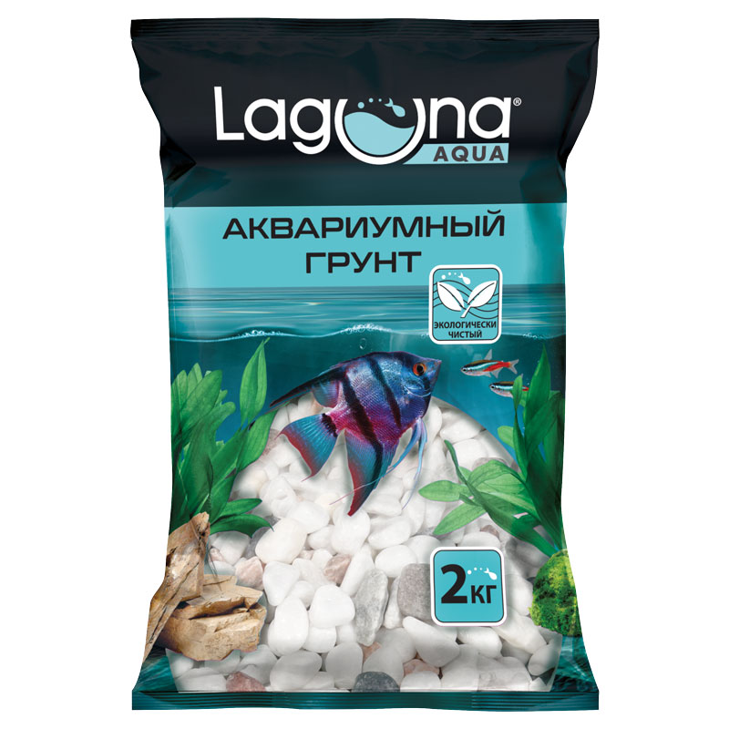 Грунт аквариумный натуральный речной песок в пакете 2кг фракция 3-5мм. Грунт Laguna является экологически чистым продуктом, безвреден для обитателей аквариума, подходит для пресной и морской воды, может применяться в ландшафтном, флористическом, террариумном и аквариумном дизайне.