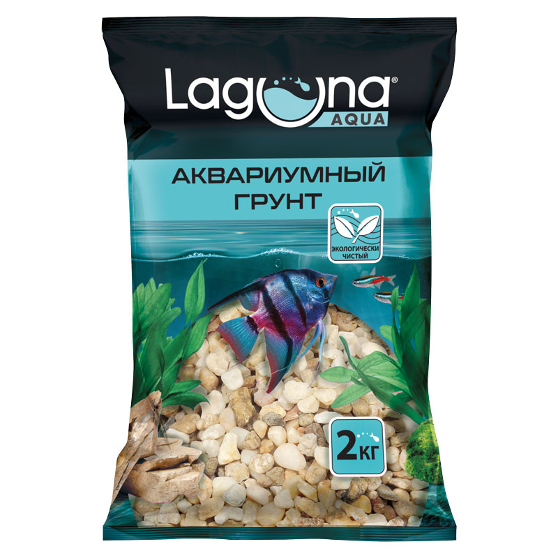 Грунт аквариумный натуральный речной песок в пакете 2кг фракция 3-5мм. Грунт Laguna является экологически чистым продуктом, безвреден для обитателей аквариума, подходит для пресной и морской воды, может применяться в ландшафтном, флористическом, террариумном и аквариумном дизайне.