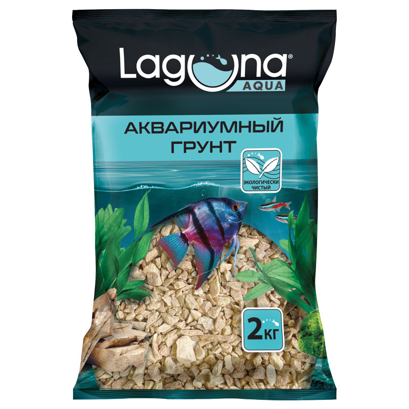 Грунт аквариумный натуральный речной песок в пакете 2кг фракция 3-5мм. Грунт Laguna является экологически чистым продуктом, безвреден для обитателей аквариума, подходит для пресной и морской воды, может применяться в ландшафтном, флористическом, террариумном и аквариумном дизайне.