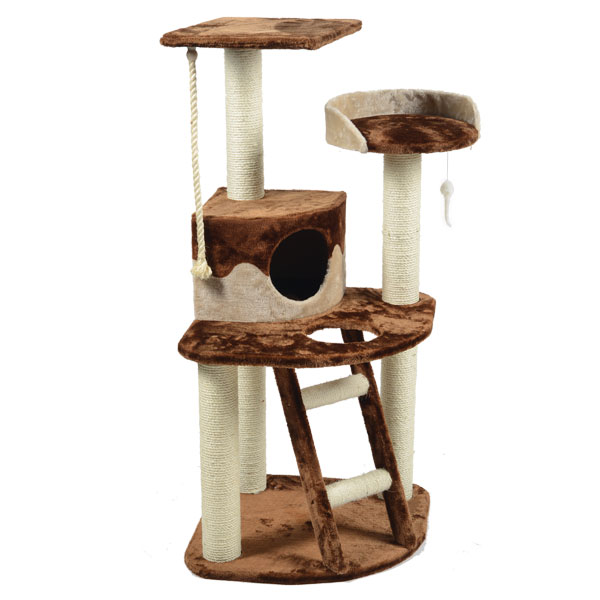 Многоярусный комплекс для кошек с домиком, лестницей и лежанкой - идеальное решение для обеспечения досуга вашего питомца. Многоярусный парк аттракционов с домиком-норкой (310х310х430; h входа = 160мм), лесенкой, двумя платформами (круглой d360мм и квадратной 350х350мм) и двумя игрушками наполнит жизнь вашего любимца неповторимыми эмоциями. Основание (530х530х700мм) обтянуто мягким плюшем, 3 столбика-когтеточки (d90х500мм) располагаются на "нижнем ярусе" и 2 столбика (d80х400мм) - на верхнем. Сизаль, как один из материалов в игровом комплексе, обладает антистатичными свойствами, отталкивая пыль и облегчая тем самым процесс уборки. Общий размер комплекса: 550х550х1200мм. Цвет: бежевый с коричневым.
