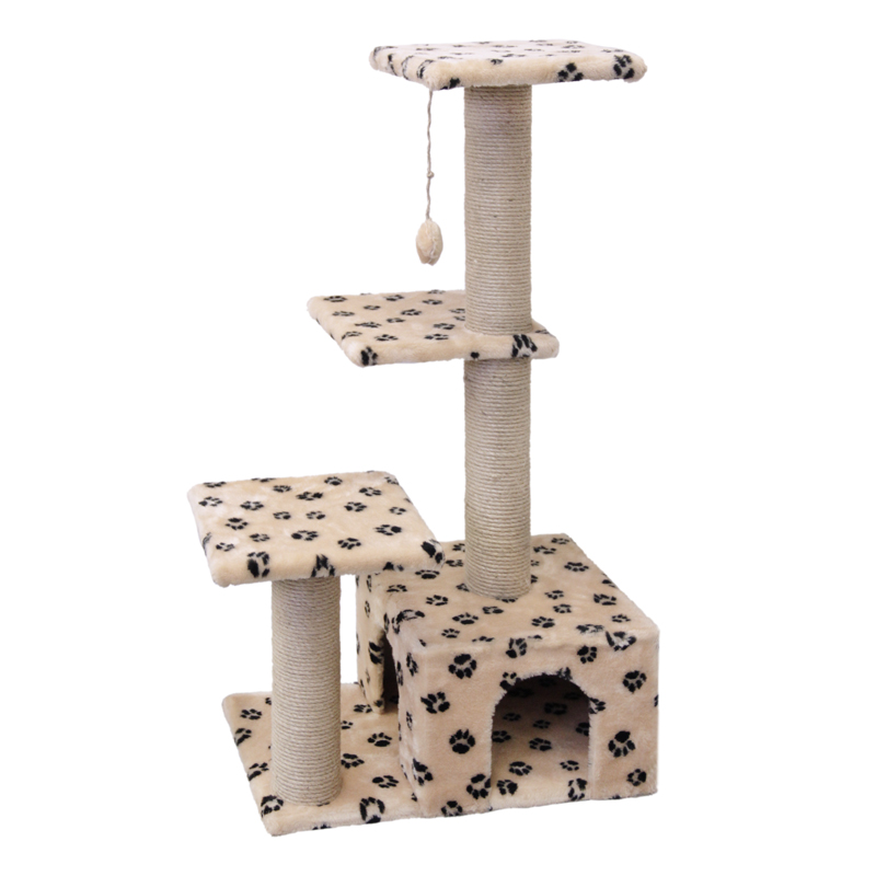 Превосходное решение для активного досуга дружного кошачьего семейства. Ваших любимцев порадует двухъярусный дом-пещерка, где всегда можно спрятаться от избытка внимания. К услугам вашего питомца также уютный и очень прочный плюшевый гамак. Цвет комплекса: бежевый, леопардовый. Размеры элементов: столбик (d90х400мм), домик (410х410х300мм, со входом 230мм). Размер комплекса: 540х480х1100мм.