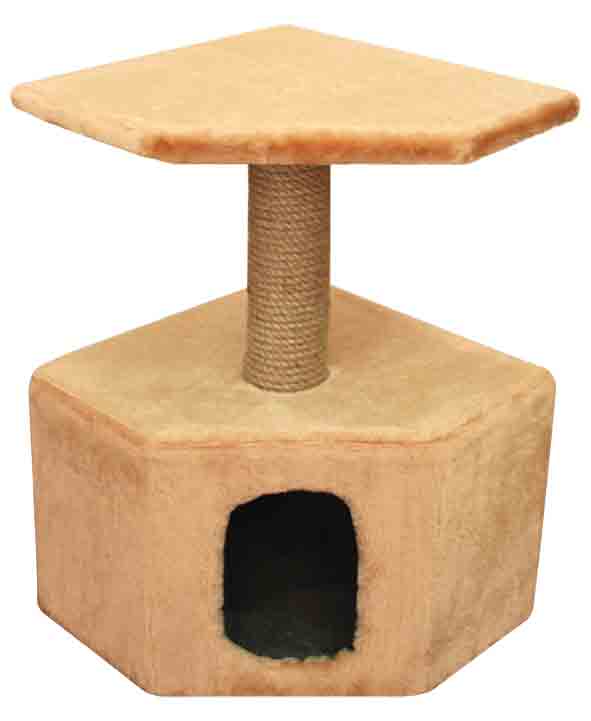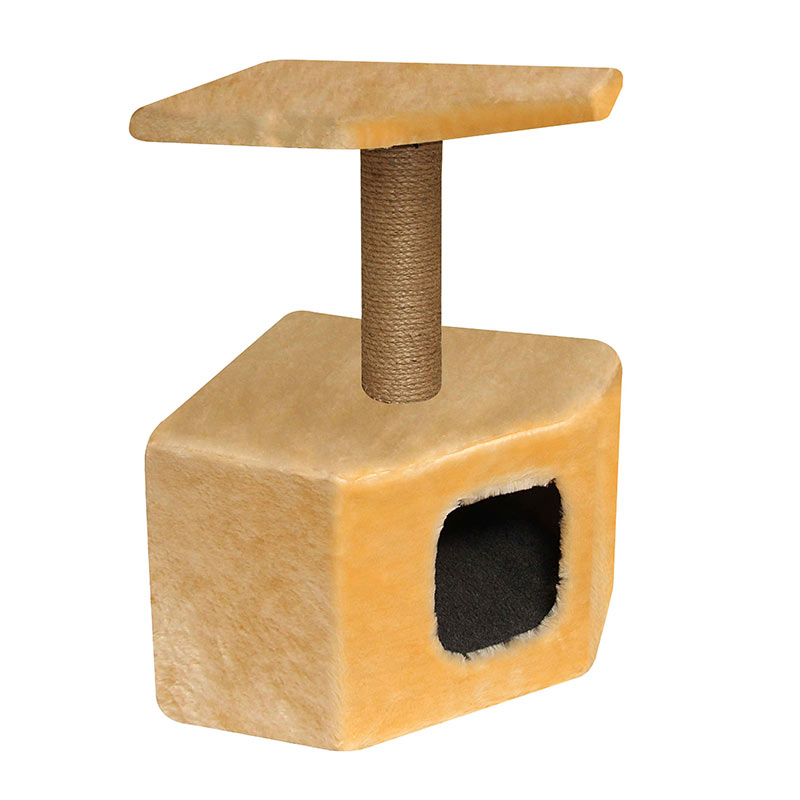 Компактный угловой дом - полезный и функциональный аксессуар для кошек, изготовленный специально для активного, интересного и разнообразного досуга четвероного любимца. Данный мини-комплекс угловой формы имеет просторный вход и мягкую однотонную обивку из искусственного меха внутри и снаружи изделия. На крыше домика установлена вертикальная когтеточка с плотной джутовой обмоткой, которая заканчивается твердой площадкой соответствующей формы, на которой ваш любимец сможет с комфортом отдохнуть после активной охоты. Размер изделия: 310х310х680мм, диаметр столбика 70мм. Цвет: бежевый, серый.