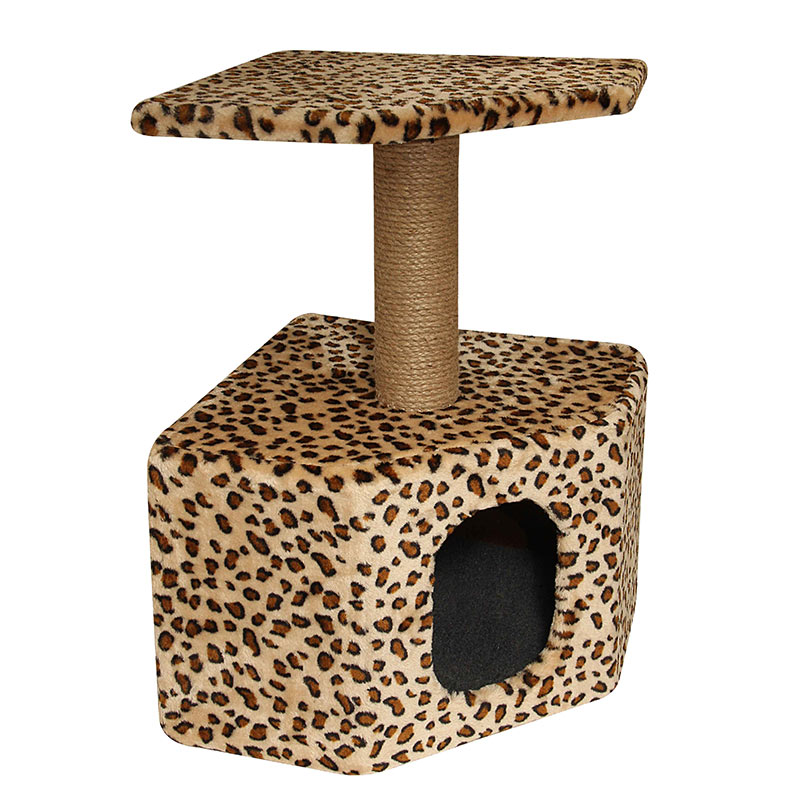 Превосходное решение для активного досуга дружного кошачьего семейства. Ваших любимцев порадует двухъярусный дом-пещерка, где всегда можно спрятаться от избытка внимания. К услугам вашего питомца также уютный и очень прочный плюшевый гамак. Цвет комплекса: бежевый, леопардовый. Размеры элементов: столбик (d90х400мм), домик (410х410х300мм, со входом 230мм). Размер комплекса: 540х480х1100мм.