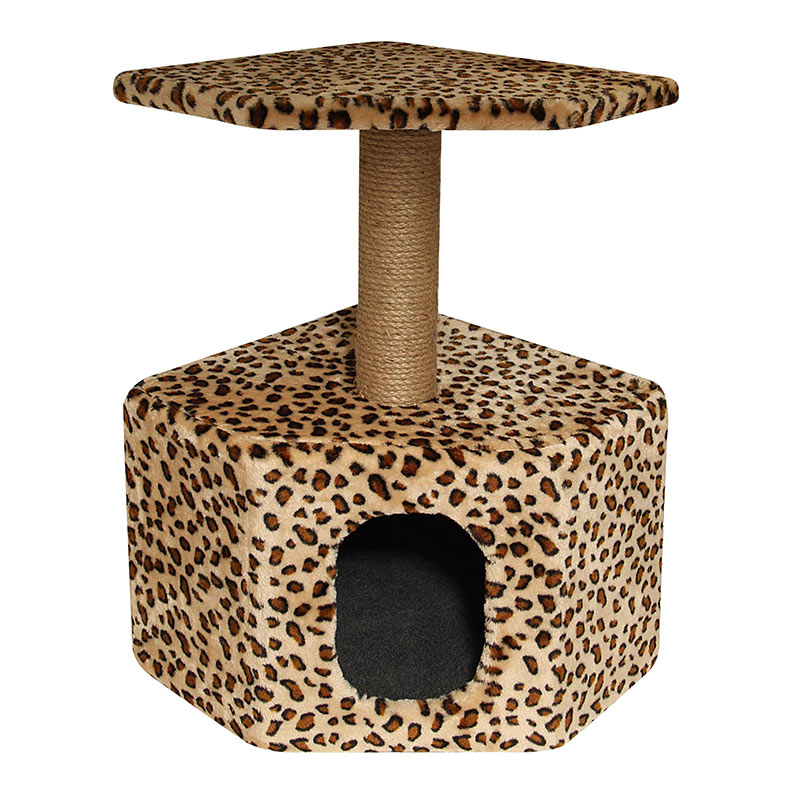 Угловой дом - полезный и функциональный аксессуар для кошек, изготовленный специально для активного, интересного и разнообразного досуга четвероного любимца. Данный мини-комплекс угловой формы имеет просторный вход и мягкую однотонную обивку из искусственного меха внутри и снаружи изделия. На крыше домика установлена вертикальная когтеточка с плотной джутовой обмоткой, которая заканчивается твердой площадкой соответствующей формы, на которой ваш любимец сможет с комфортом отдохнуть после активной охоты. Размер изделия: 410*410*720мм, диаметр столбика 100мм. Цвет изделия: бежевый, серый с пятнами, серый, бежевый леопард, серый с лапками.