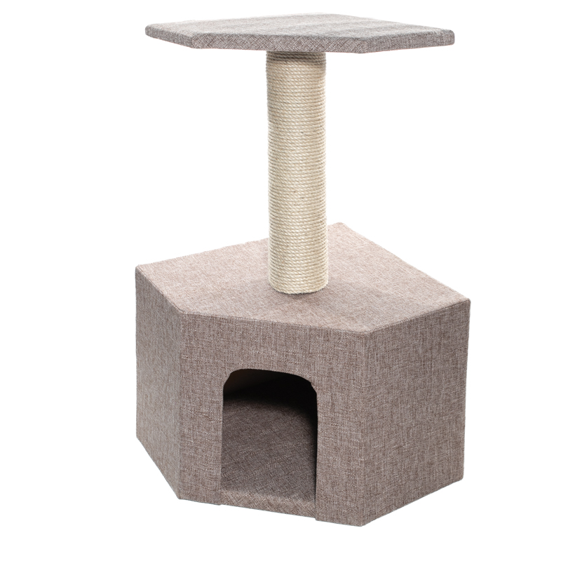 Этот небольшой угловой домик - увлекательный аксессуар для кошек, изготовленный специально для активного, интересного и разнообразного досуга четвероного любимца. Данный комплекс представляет собой угловой домик с просторным входом, обитый тканью рогожка внутри и снаружи. На крыше домика установлена вертикальная когтеточка с плотной джутовой обмоткой, которая заканчивается твердой квадратной площадкой, на которой ваш любимец сможет с комфортом отдохнуть или понаблюдать за окружающими. Диаметр столбика 100мм. Цвет: бежевый