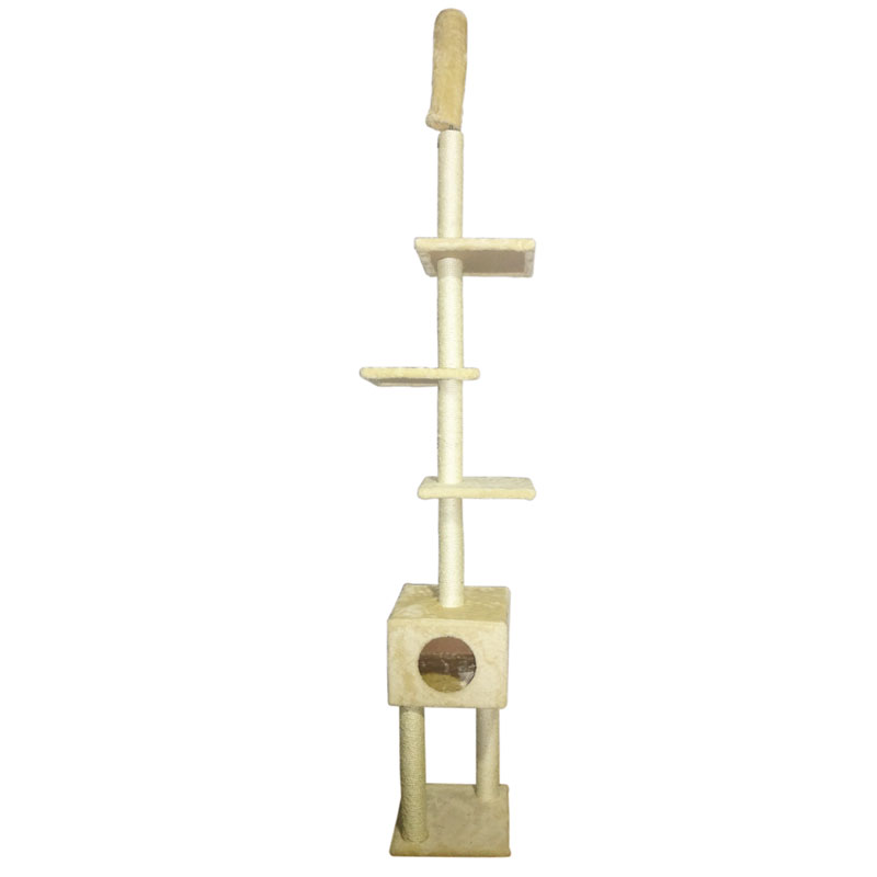Изящный и функциональный игровой комплекс для кошек, который можно крепить к потолку и стене. Комплекс состоит из трех полочек (330х310мм) на разных уровнях, задающих ход игры, и уютного домика на нижнем ярусе (340х330х260мм, вход - d170мм), в котором можно прекрасно отдохнуть. Размер столбиков: d75х430мм. Размер комплекса: 420х350х2500-2700мм. Цвет: бежевый.