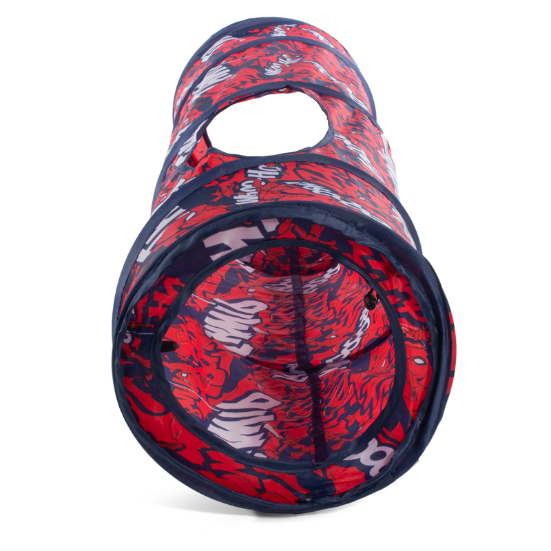 Нейлоновый игровой туннель для кошек яркой расцветки Человек-паук. Мягкий, просторный, шуршащий и очень теплый, такой туннель станет не только прекрасным аксессуаром для активной игры, но и отличным местом для отдыха после интенсивных "кардионагрузок". Форма изделия держится, благодаря прочному металлическому каркасу, а окошко "для наблюдения и охоты" станет дополнительным элементом для увлекательной игры. Размер изделия d250х900мм. При этом в сложенном виде такой туннель совсем не занимает места.