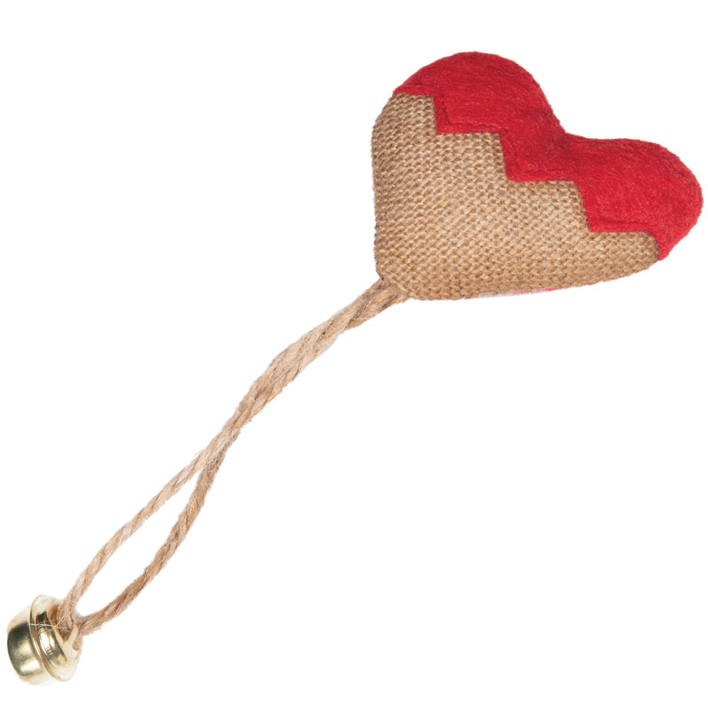 Эта очаровательная игрушка выполнена в виде сердечка с бубенчиком на веревке в теплой и спокойной гамме стиля кантри. Натуральные материалы и природная палитра цветов - основные характеристики данного стиля. Игрушка содержит кошачью мяту, что гарантировано привлечет внимание вашего питомца. С такой игрушкой маленькие котята хорошо развиваются, а взрослые животные держат себя в тонусе и оттачивают охотничьи навыки без вреда для мебели и предметов интерьера. Цвет: красный со светло-коричневым. Размер: 150x65x20мм.
