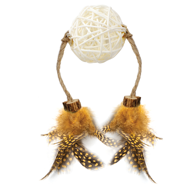 75438 Игрушка для кошек Плетеный мячик с колокольчиком и перьями 13см, серия CATCH & SCRATCH ECO