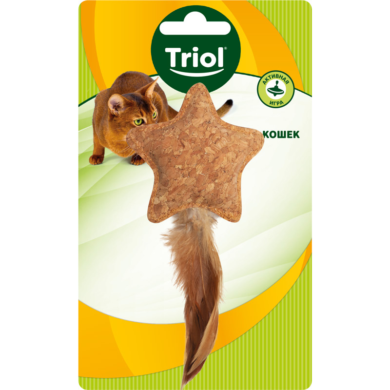 Игрушка для кошек из пробковой коры "Звездочка с перьями", 80/150мм, Triol