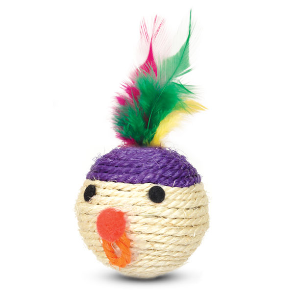 Игрушка для кошек из сизаля "Мяч-мордашка с перьями", d65мм, Triol
