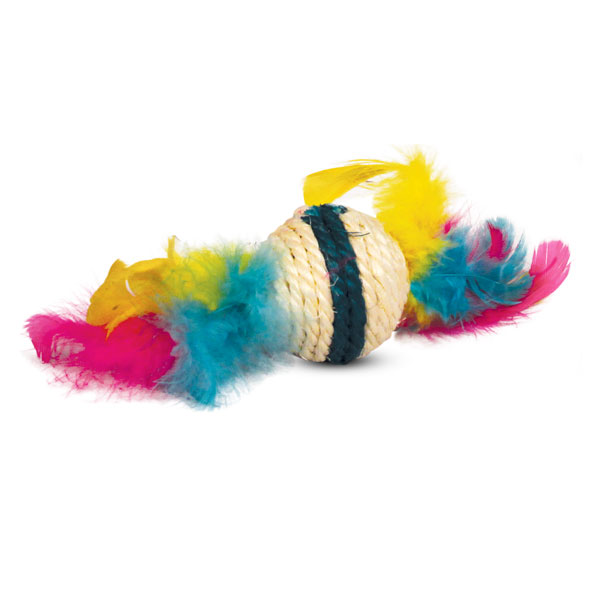 Игрушка для кошек из сизаля "Шарик с перьями", d50/90мм, Triol