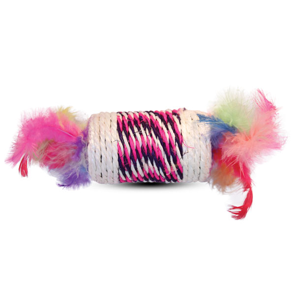 Кроме того сизаль – натуральный и долговечный материал, поэтому игрушки из сизаля очень прочные и абсолютно безвредные для здоровья Вашего питомца. Цвет: бело-розовый с фиолетовым. Размер: 115*d45мм.