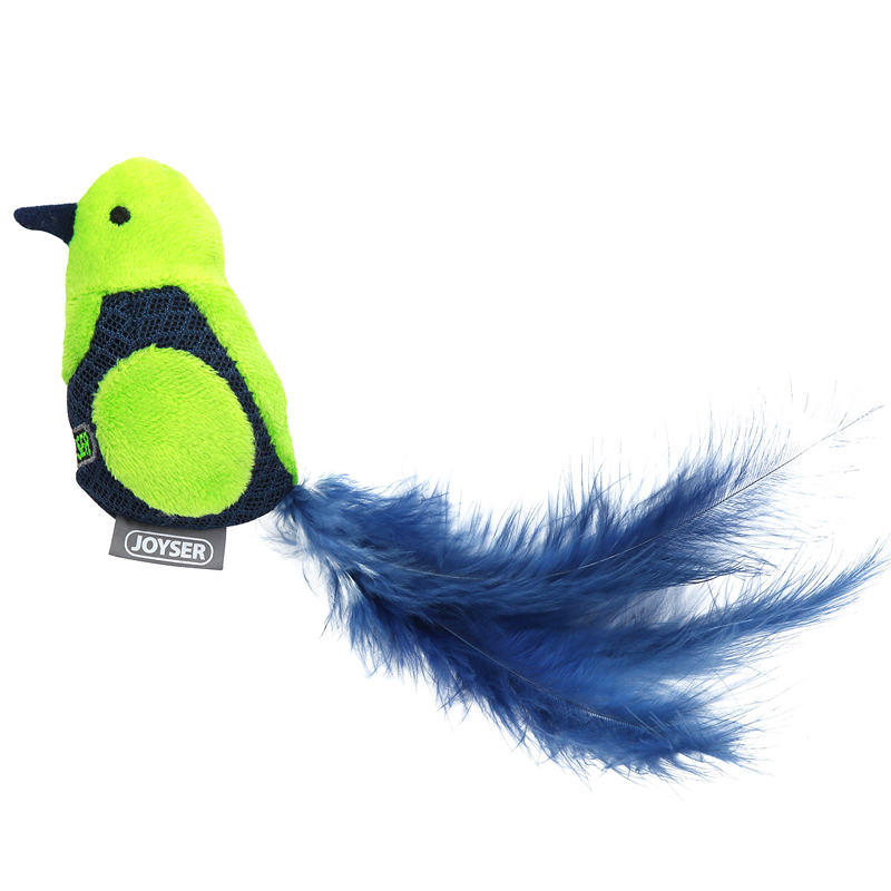 Игрушка для кошек JOYSER Cat Motion Птичка со звуковым чипом и перьями зеленая, 19 см
