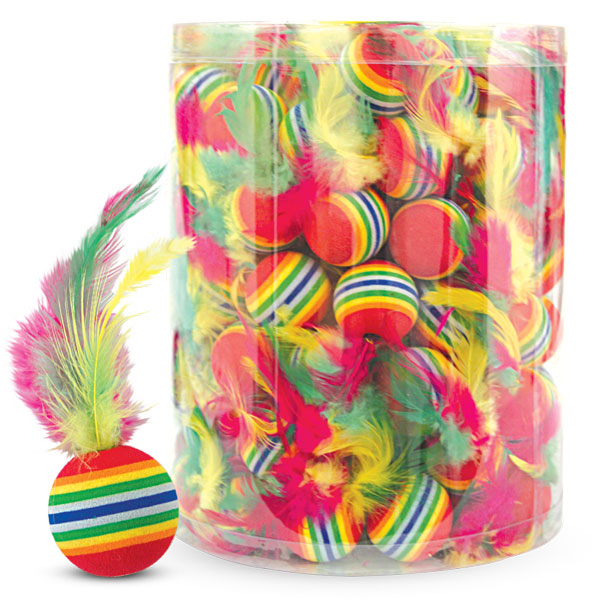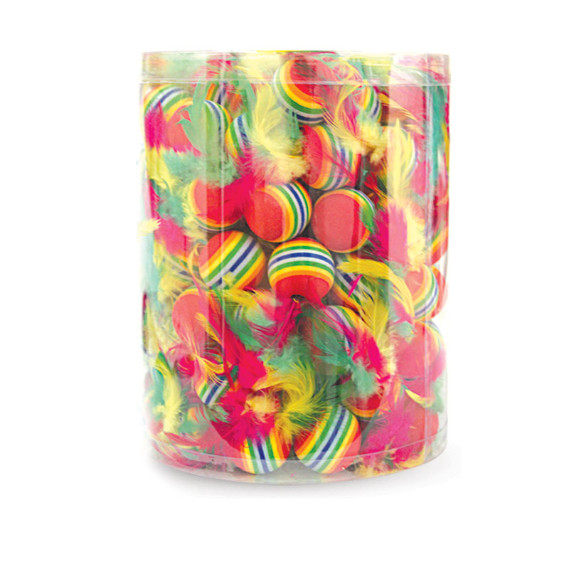 Игрушка для кошек "Мяч с пером" (туба 120шт.) Мячик гладкой структуры становится очень подвижным во время игры вашего питомца с ним, а натуральный перья cделают игру еще более увлекательной.Цвет: в ассортименте. Размер: d35мм