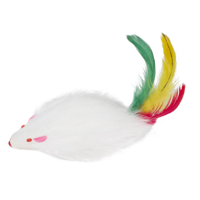 Игрушка для кошек "Мышь-погремушка с пером разноцветная", 45-50мм (пакет 24шт.), Triol