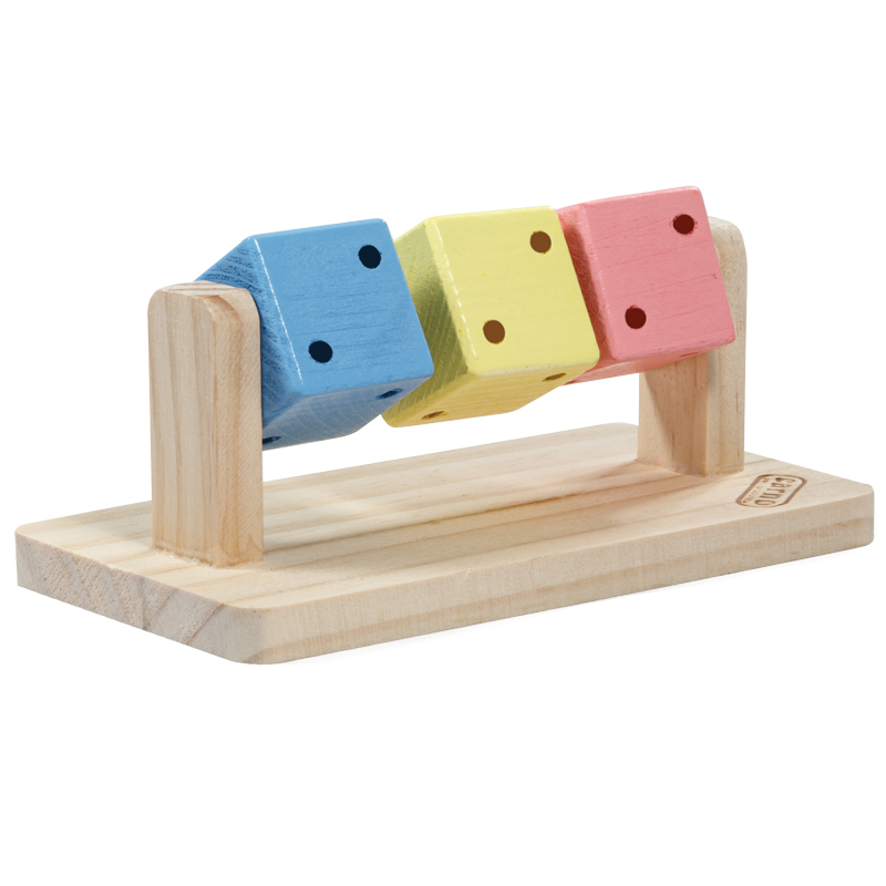 Веселая игрушка для мелких животных «Кубики» – это прекрасное развлечение для маленьких питомцев. Разноцветные крутящиеся кубики разнообразят досуг вашего любимца и отлично впишутся в интерьер любой клетки. К тому же, изделие выполнено из натурального дерева и подходит для стачивания и ограничения чрезмерного роста зубов грызунов. Размер: 140*70*60мм.