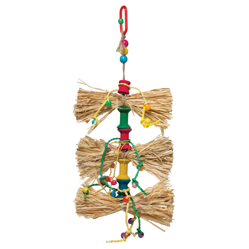 Игрушка для птиц в виде подвески из натуральных листьев кукурузы с бусинами. Крепление: деревянный крючок. Размер: 220/260*140мм