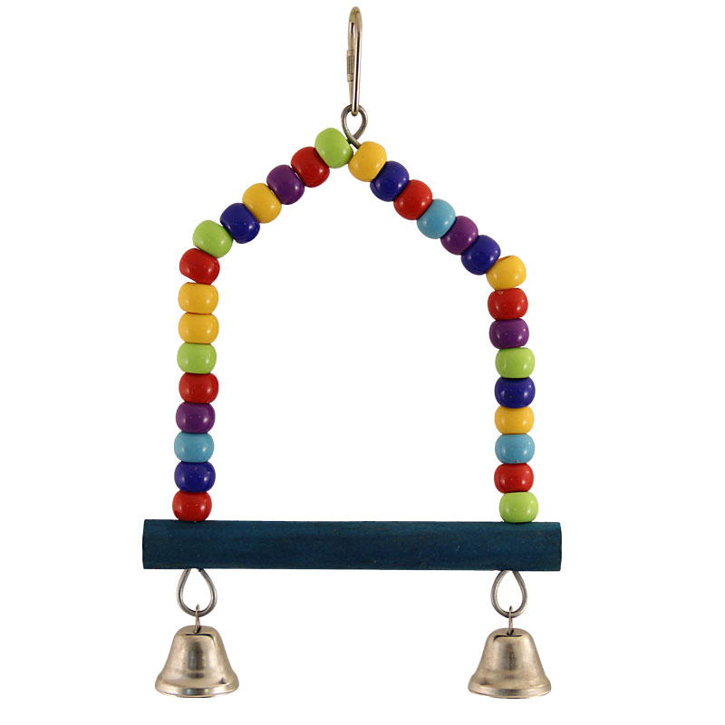 Игрушка-качели для птиц в виде качелей из бус и 2ух колокольчиков. Крепление: карабин. Цвет: в ассортименте. Размер:220*155мм.