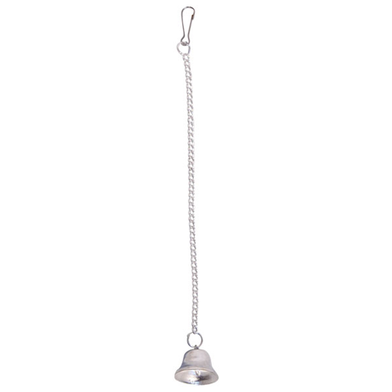 Игрушка для птиц в виде серебряного колокольчика на цепочке. Крепление: карабин. Цвет: в ассортименте. Размер: 190*20мм.