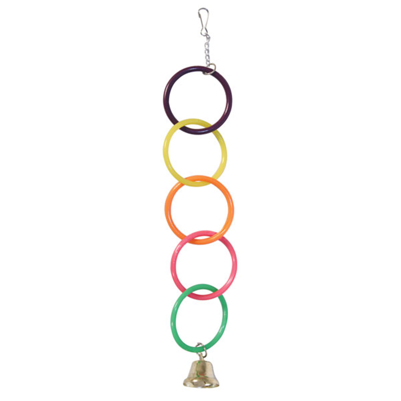 Игрушка в виде подвески из 5 колец с колокольчиком. Цвет: в ассортименте. Размер: 270*d50мм.