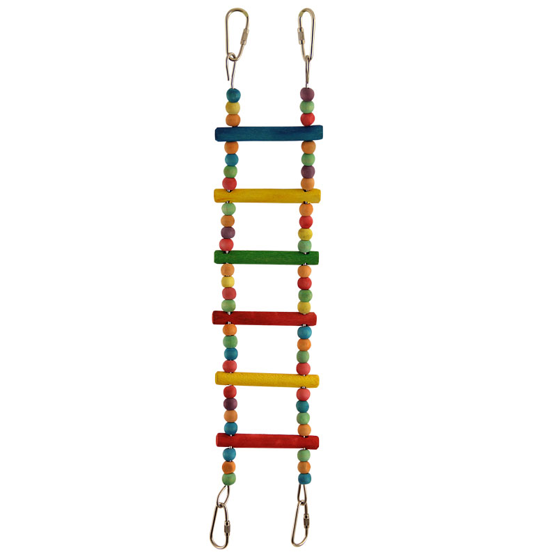 Игрушка для птиц в виде деревянной разноцветной лестницы с бусинами. Крепление: 4 карабина. Цвет: разноцветный.Размер: 360*110мм; 290 - длина лестницы без карабинов.