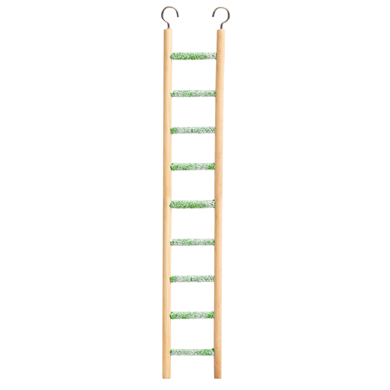 Лестница для птиц с девятью перекладинами. На каждую перекладину нанесено покрытие, выполненное из дробленых морских ракушек и песка. Такое покрытие добавляет в рацион вашей птицы кальций, необходимый для формирования костной и мышечной ткани. Кальций особенно важен молодым пернатым. Благодаря грубой структуре ступенек птицы смогут обтачивать клюв и когти, которые находятся в процессе постоянного роста. Цвет: зеленый с бежевым. Размер: 375*80*10мм.
