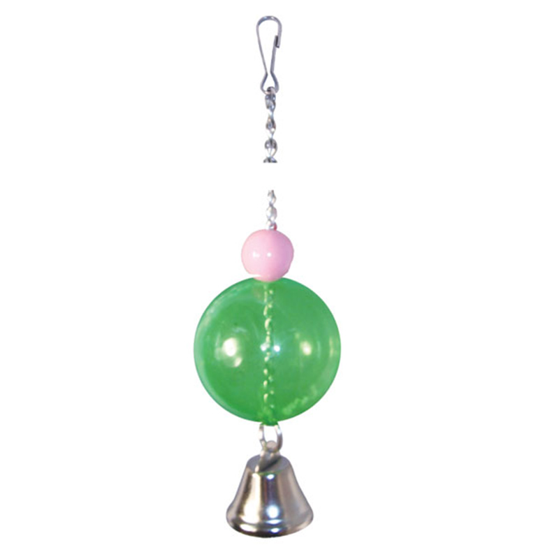 Игрушка для птиц в виде цепочки и пластикового шара с колольчиком на ней. Цвет: в ассортименте. Размер: 200*d40мм.