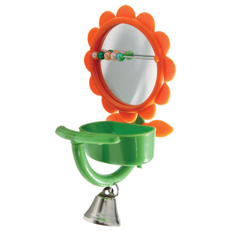 Игрушка для птиц в виде зеркальца с колокольчиком и кормушкой. Цвет: в ассортименте. Размер: 75*150*60мм.