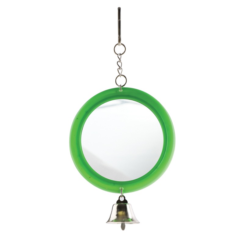 Игрушка для птиц - зеркало с колокольчиком. Цвет: в ассортименте. Размер: 120*d60мм.