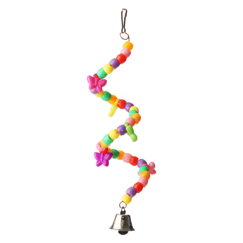 Игрушка для птиц в виде змейки из бусинок и звездочек с колокольчиком. Форма спирали может отличаться от представленной на фотографии. Цвет: разноцветный. Размер: 165*30мм.