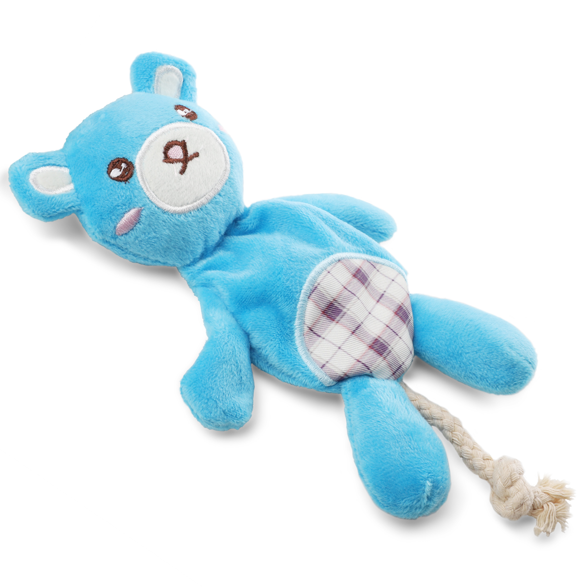 Очаровательная игрушка "Мишка" с двумя "пищалками" сшита из мягкого шелковистого плюша голубого цвета. Благодаря продуманным габаритам изделие удобно носить в зубах, а звонкие "пищалки" внутри изделия пробуждают охотничьи инстинкты вашего питомца, делая игру еще интереснее. Одна пищалка расположена в голове игрушки, другая в теле. Цвет: синий. Размер: 230*120*30мм.