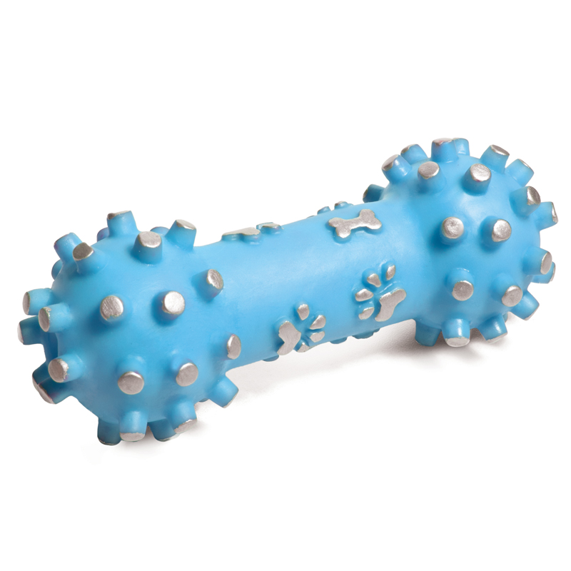 Виниловые игрушки помогают собаке снять стресс, если хозяина нет дома, массируют десны, а также способствуют формированию правильного поведения у собаки. Игрушка легко моется и не требует особого ухода. Игрушка "Гантель" станет прекрасным подарком для неугомонного четвероногого питомца. С пищалкой внутри. Цвет: коралловый, голубой. Размер d65*165мм.