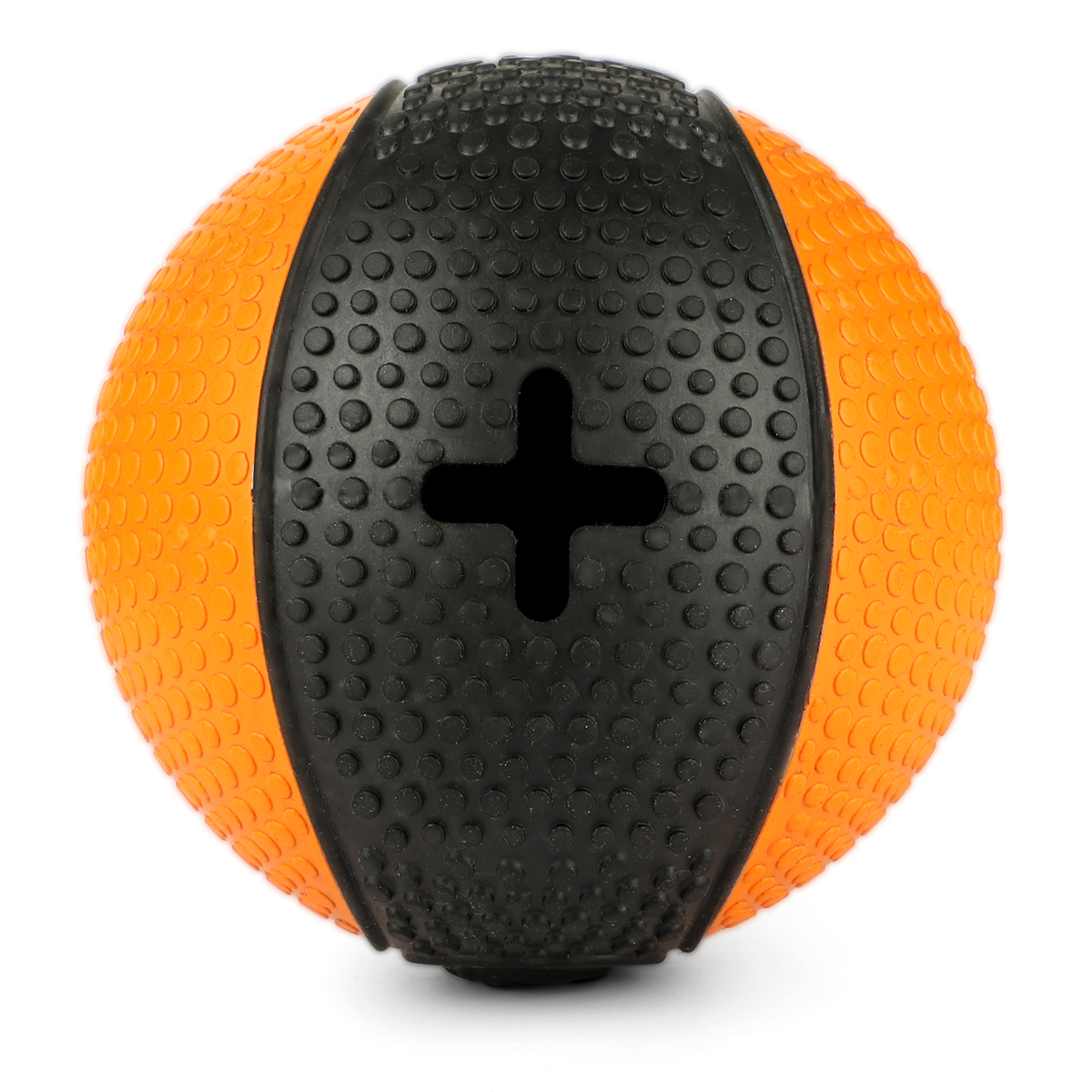 Суперпрочная игрушка для собак средних пород выполнена в форме мяча. Эта «долгоиграющая» игрушка изготовлена из резины повышенной прочности и станет идеальным решением для четвероногих обладателей крепких зубов и мощных челюстей. Игрушка оснащена отверстиями для лакомств, что станет дополнительным фактором привлечения внимания вашей собаки в процессе игры. Цвет: черно-оранжевый. Вес: 170г. Размер: d75мм.