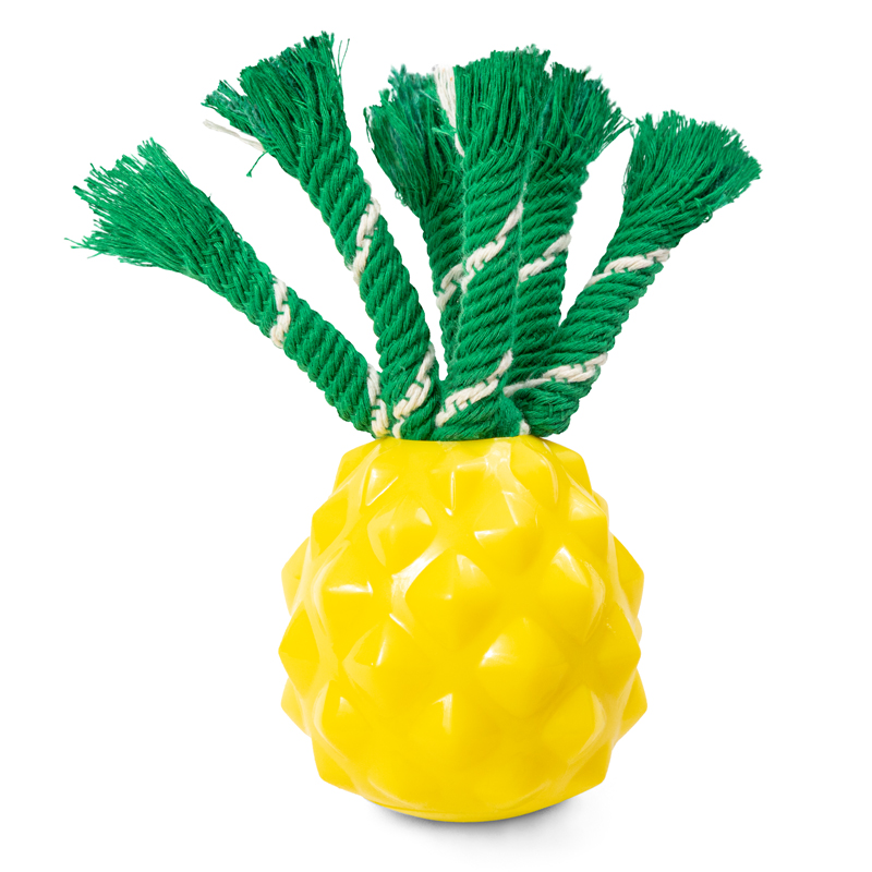 Фактурная игрушка для собак в форме ананаса из термопластичной резины с внутренним резиновым каркасом повышенной прочности. К внутренней части игрушки крепится толстый хлопчатобумажный витой шнур, имитирующий листочки. Игрушка устойчива к укусам собак крупных и средних пород с массивными челюстями. Термопластичная резина сохраняет упругость и эластичность даже при низких температурах и отличается длительным эксплуатационным периодом. Идеально подойдет для аппортировки и игре в воде. Материал мало подвержен химическому или термическому воздействию, не токсичен, без запаха, легко моется и не требует особого ухода. Цвет: "ананас" - желтый, веревка - зеленый. Размер: 155*85*75мм.