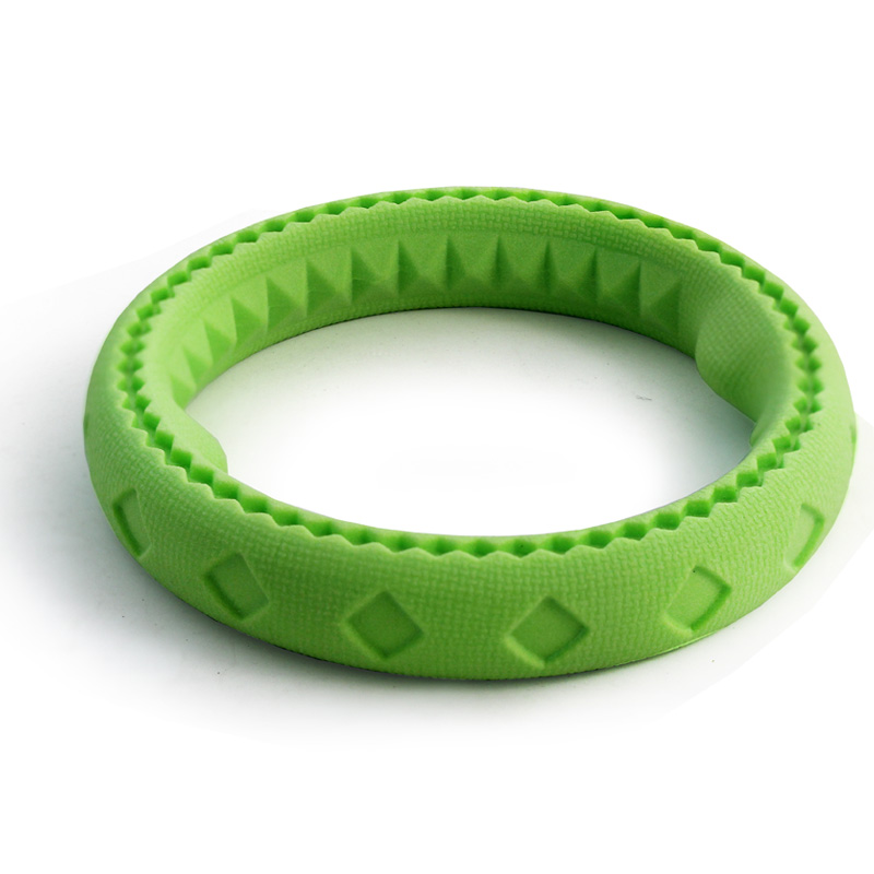 Оригинальная игрушка в форме кольца выполнена из термопластичной резины и подходит для собак средних пород. Прочная и в то же время обладающая мягкой структурой, она станет идеальным решением для четвероногих питомцев. Изделие послужит хорошим "напарником" для игры и позаботится о здоровье зубов животного. Тонкий аромат яблока дополнительно привлечет внимание питомца и позволит сделать игру или тренировку еще интереснее. Цвет: зеленый. Размер: d170*30мм.