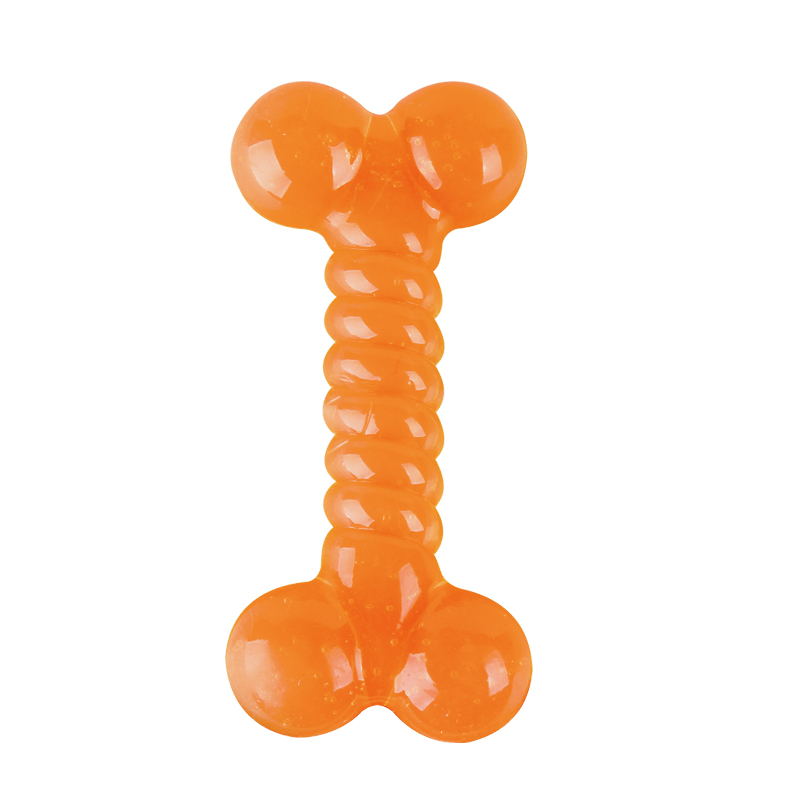 Игрушки для собак из термопластичной резины помогают поддерживать в тонусе жевательные мышцы, укрепляют и очищают зубы питомца. Термопластичная резина отличается большей упругостью, эластичностью при низких температурах и более длительным эксплуатационным периодом. Термопластичная резина мало подвержена химическому или термическому воздействию, не токсична и, в результате, обладает гипоаллергенными свойствами. Игрушка легко моется при помощи мыла и не требует особого ухода. Цвет: зеленый, оранжевый. Размер: 140*60*30мм.