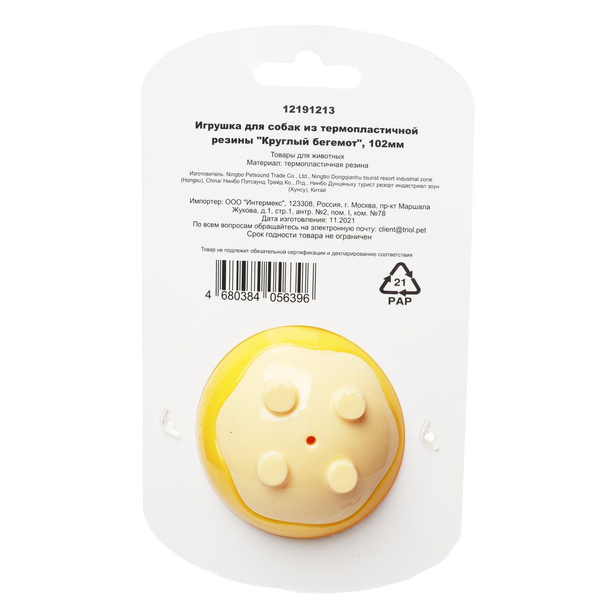Игрушка для собак из термопластичной резины "Круглый бегемот", 102мм, Triol