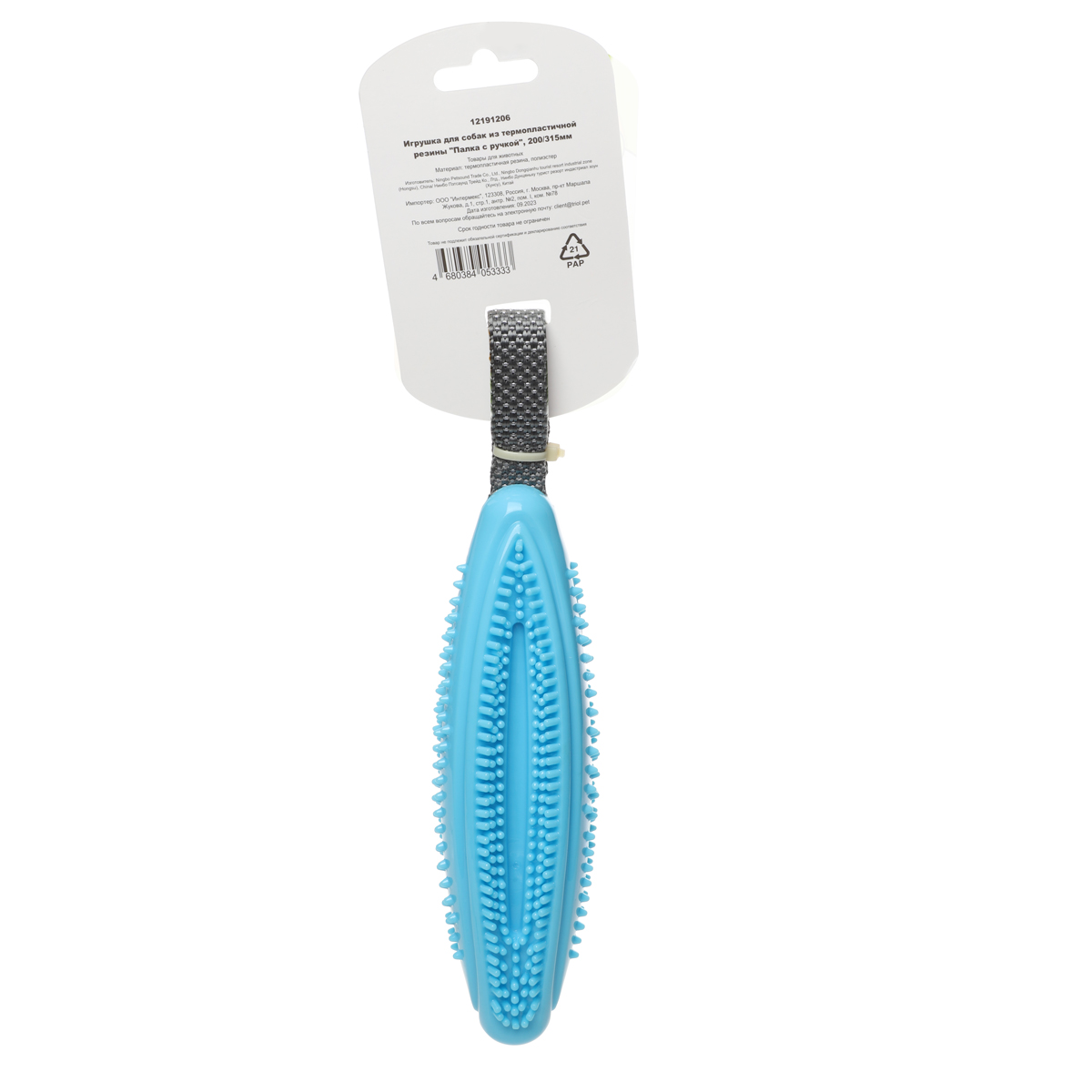 Оригинальная игрушка "Палка с ручкой" из термопластичной резины для собак средних и крупных пород. Прочная и в то же время обладающая мягкой структурой, она станет идеальным решением для четвероногих питомцев. Изделие послужит хорошим "напарником" для игры и позаботится о здоровье зубов животного. Цвет: голубой. Размер: 200*55*50мм (длина с ручкой - 315мм).