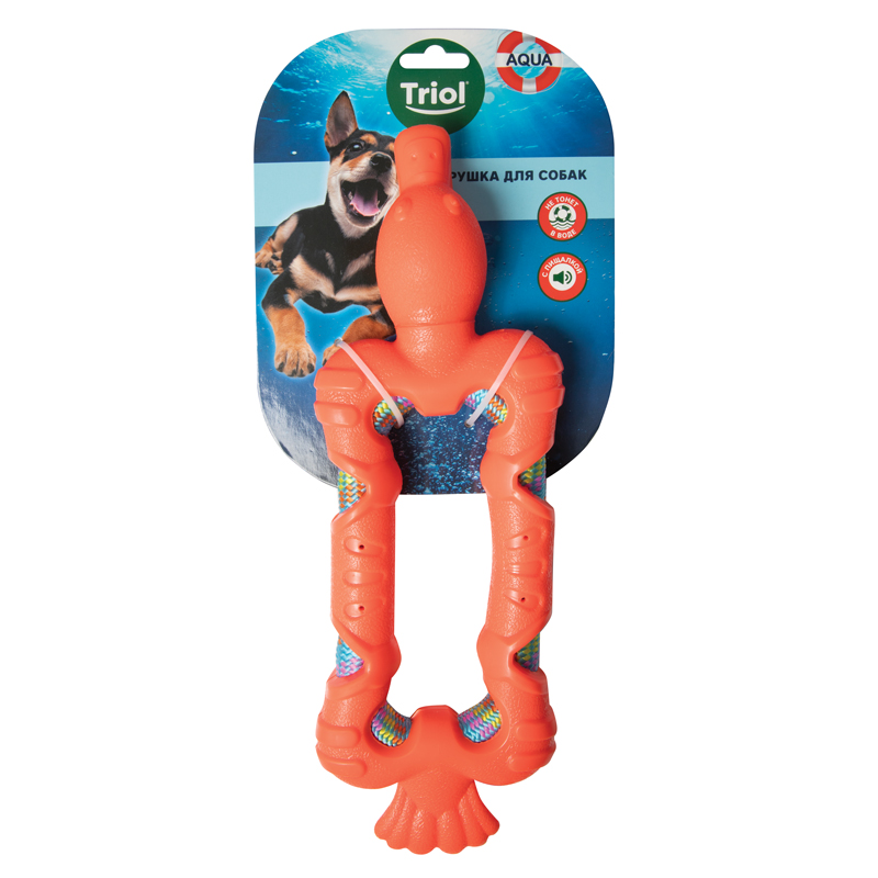 Игрушка "Утка с плетеной веревкой" из линейки AQUA выполнена из термопластичной резины, внутрь которой встроен прочный канат. Термопластичная резина сохраняет упругость и эластичность даже при низких температурах и отличается длительным эксплуатационным периодом. Такой материал мало подвержен химическому или термическому воздействию, не токсичен, а также легко моется и не требует особого ухода. Игрушка помогает очищать зубы от налета, поддерживать в тонусе жевательные мышцы. Игрушка отлично подходит для игр в водоемах, так как она не тонет. Благодаря своей форме, игрушка подходит для игр в перетяжки. Внутри игрушки (в голове утки) встроена пищалка, которая привлекает внимание питомцев. Подходит для собак средних пород весом до 25 кг. Цвет изделия: оранжевый. Размер изделия: 300*100*35.