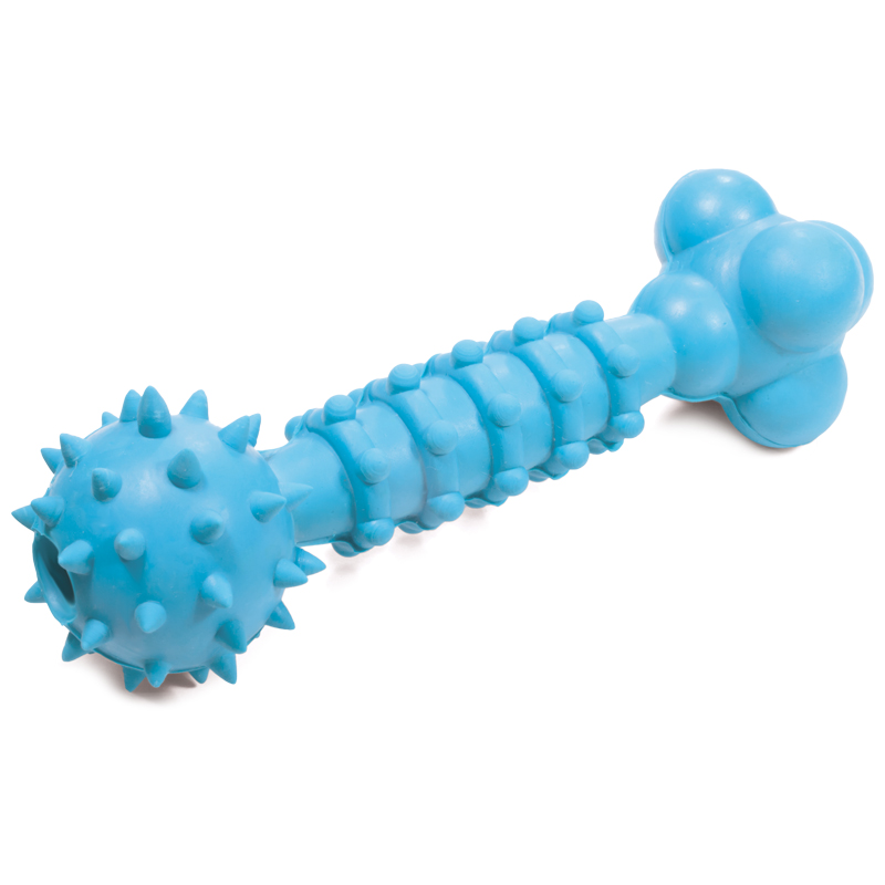 Полноценная жизнь собак – это не только сбалансированное питание и ежедневные прогулки, но и игры. Резиновые игрушки помогают снять стресс, если хозяина нет дома, а также способствуют формированию правильного поведения. Игрушки из резины достаточно прочные, они особенно незаменимы для собак с сильной жевательной потребностью. Внутри игрушки находится пищалка, дополнительно привлекающая внимание собаки во время игры. Цвет изделия: розовый, голубой, салатовый. Размер изделия: 180*40*40мм.