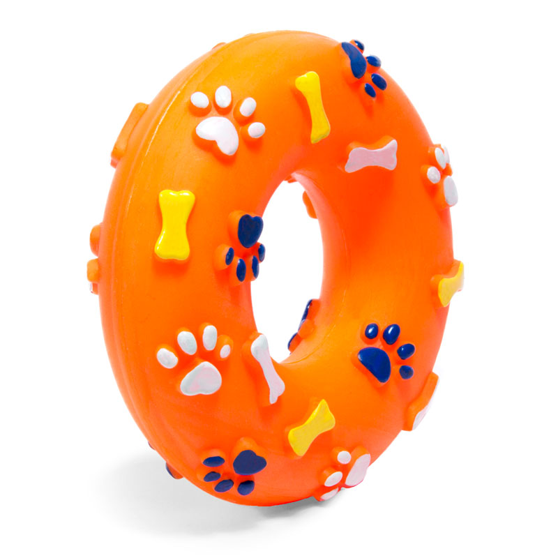 Виниловые игрушки помогают собаке снять стресс, если хозяина нет дома, массируют десны, а также способствуют формированию правильного поведения у собаки. Игрушка легко моется и не требует особого ухода. Игрушка "Кольцо" станет прекрасным подарком для неугомонного четвероногого питомца. С пищалкой внутри. Цвет: оранжевый. Размер: d130*35мм.